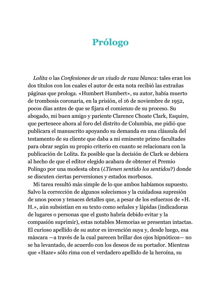 Había dos formas de llamar a aquel manuscrito de Vladimir Nabokov: Lolita o Las confesiones de un viudo de piel pálida. Así lo recibí, envuelto en un silencio espeso, como quien abre una carta que alguien escribió desde un cuarto sin ventanas. El firmante que se hacía llamar Humbert Humbert— ya no respiraba cuando llegó a mis manos: una trombosis coronaria lo había sorprendido en prisión, el dieciséis de noviembre de 1952, apenas días antes de su juicio. Clarence Choate Clark, abogado y primo mío, hombre de leyes en el distrito de Columbia, me buscó con un encargo. El difunto había dejado en su testamento la libertad de publicar o no su historia, y Clarence creyó oportuno cederme esa llave. Tal vez porque el editor en cuestión acababa de recibir el Premio Polingo por un libro extraño (¿Tienen sentido los sentidos?), que rozaba terrenos de la mente donde la luz apenas entra.